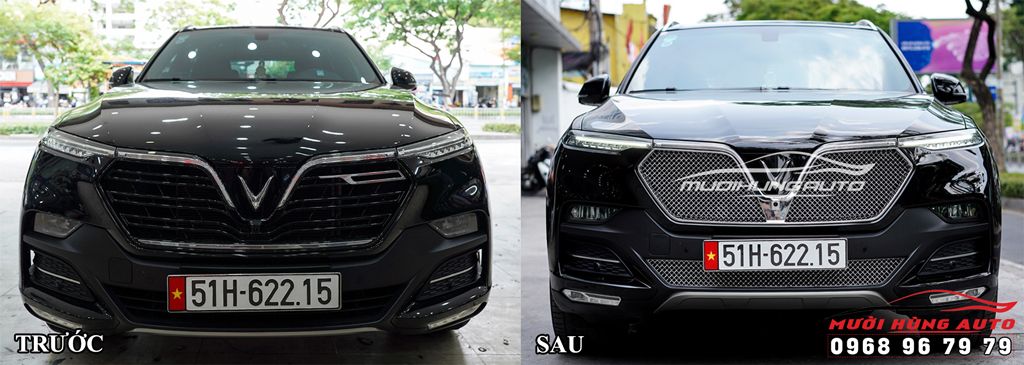 So sánh xe Vinfast LUX SA2.0 trước và sau khi độ mặt ga lăng tại Mười Hùng Auto